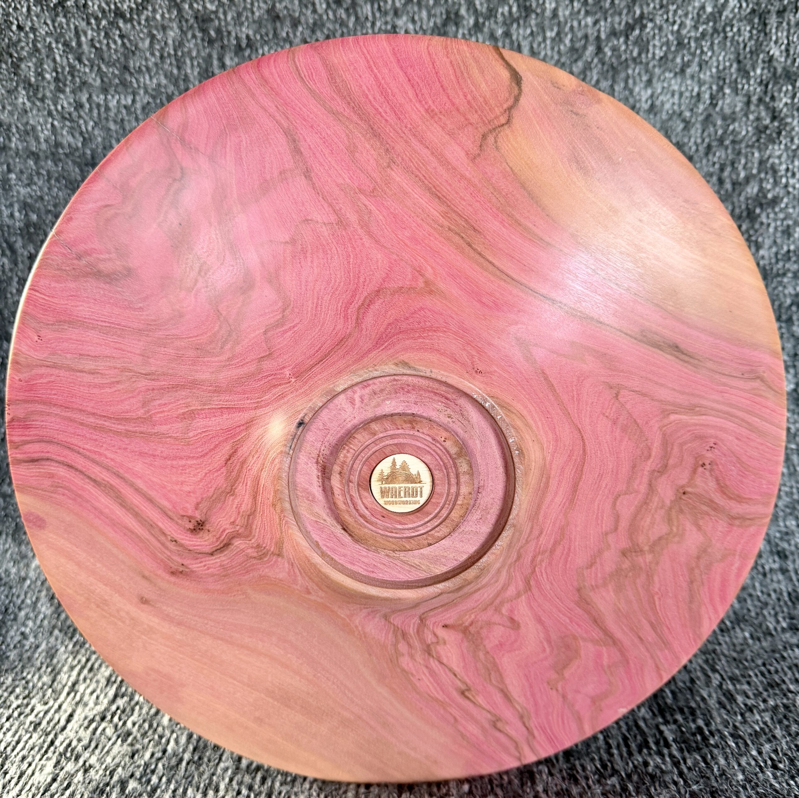 Was even stil maar heb eindelijk weer eens een schaal af. De structuur lijkt op wolkendek van de planeet Jupiter maar dan alleen iets andere kleur. De schaal is 35 cm en van olijfhout. Ik heb hout gekleurd met zelf ontwikkeld procedé. Dat geeft hele mooie kleuring van de houtstructuur. Afwerking is met hardwax olie (van de Kleurenwaaier) en de onderkant met een niet kleurende olie.