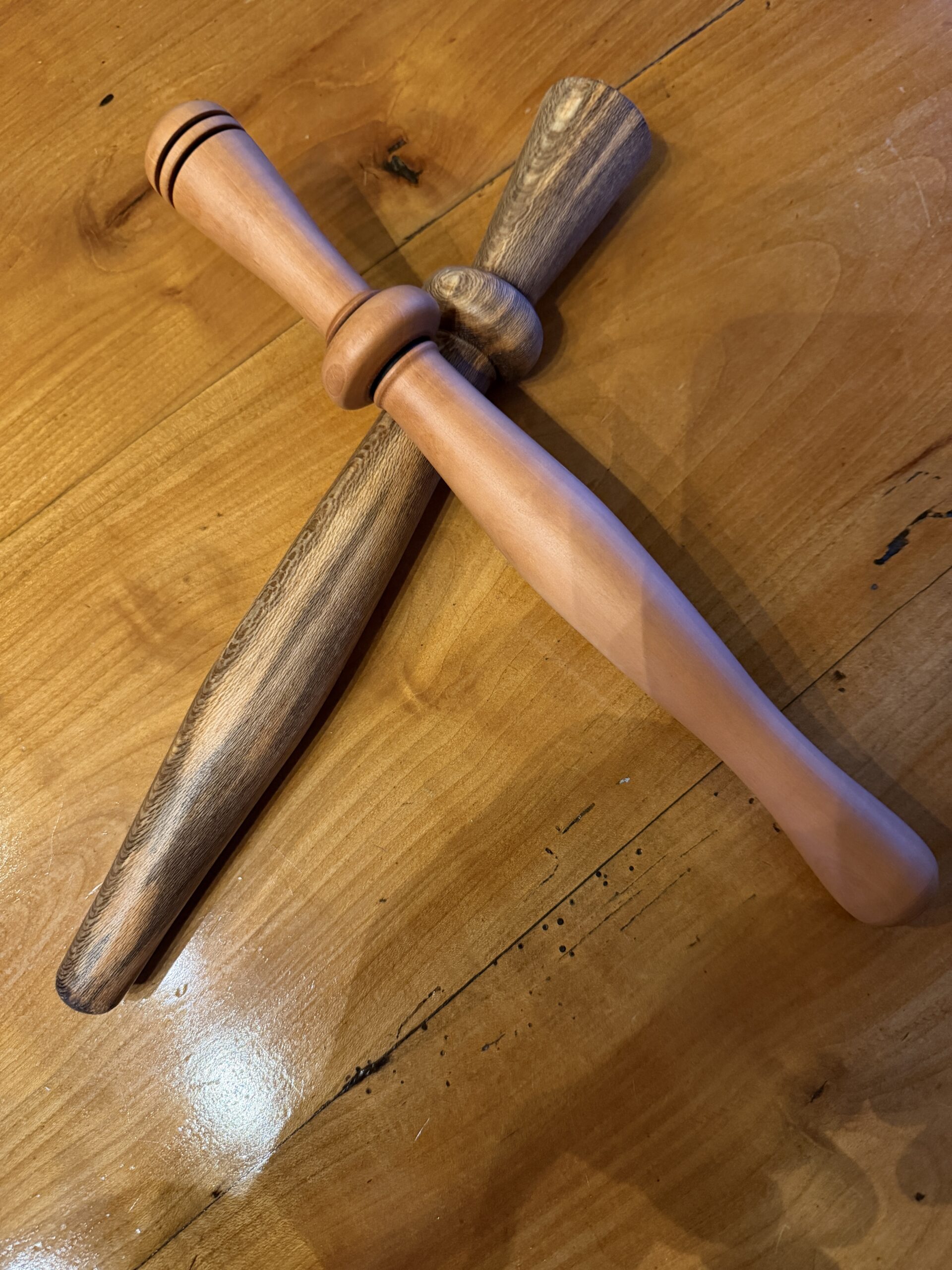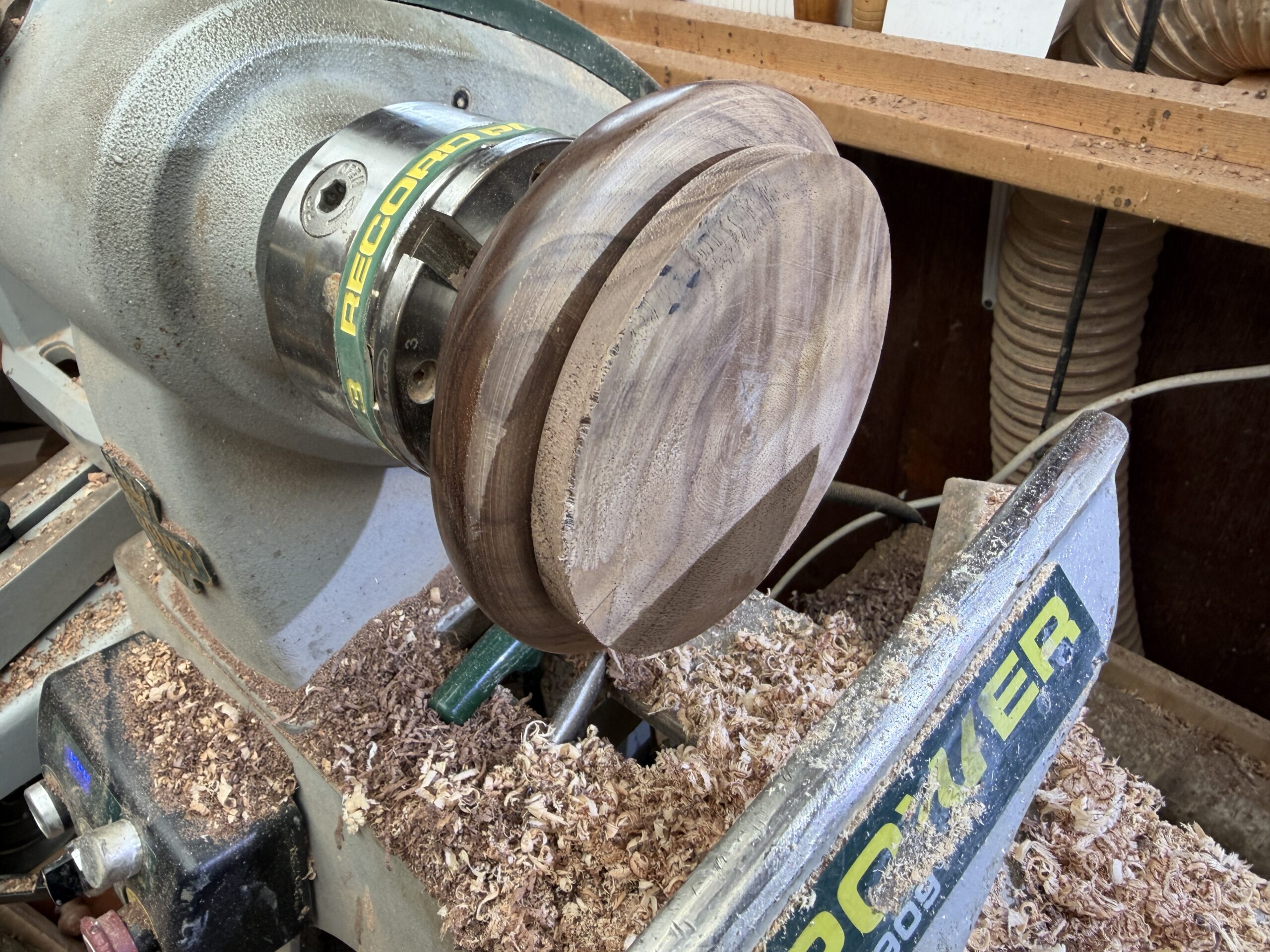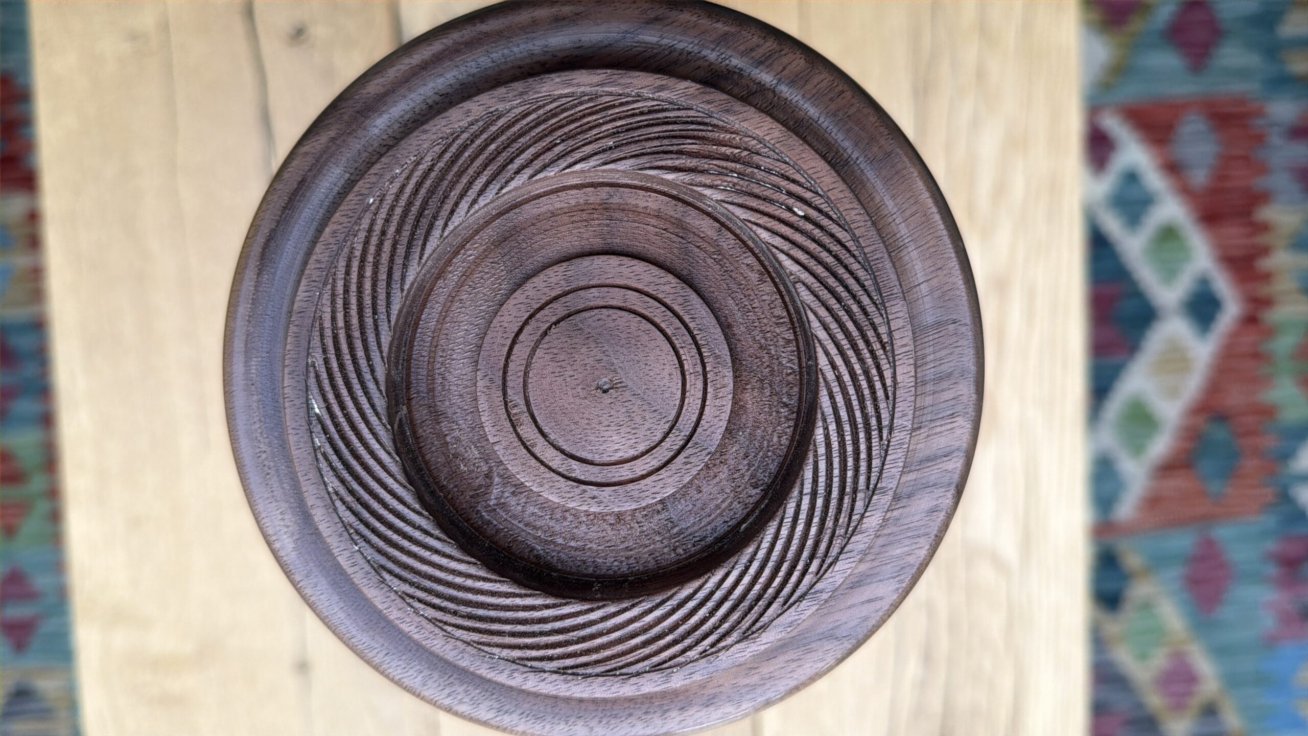 Via via vroeg iemand of ik spurtles kon maken. Ik wist niet wat dat waren maar het schijnen roerstokken te zijn die met name in Schotland worden gebruikt om havermout of yoghurt te roeren. IK heb er 2 gemaakt en ik direct vraag om deksel voor een grote pot toemaken (oude was kapot gevallen). In de vaas worden walnoten gebruikt dus ik heb deksel van notenhout gemaakt.